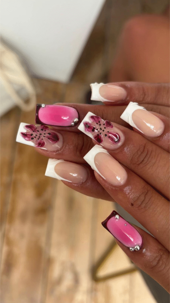 Discover our stunning collection of nail designs, each crafted with precision, creativity, and luxury in mind. From timeless classics like French tips and glossy nudes to bold chrome finishes, intricate floral details, and modern ombrés, our work reflects both artistry and elegance.